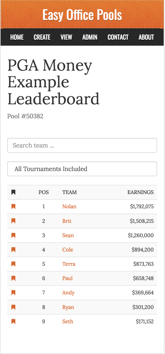 The Total Payout For All 30 Players In The Field Is As Follows: